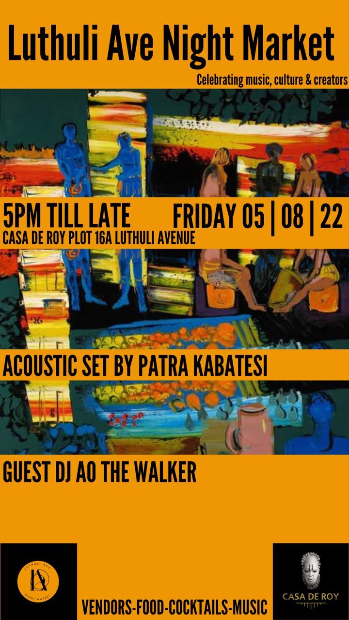 The Luthuli Ave Night Market is taking place on 5th August 2022 at Casaderoy, located on Plot 16A Luthuli Avenue from 5p.m. into the late night.